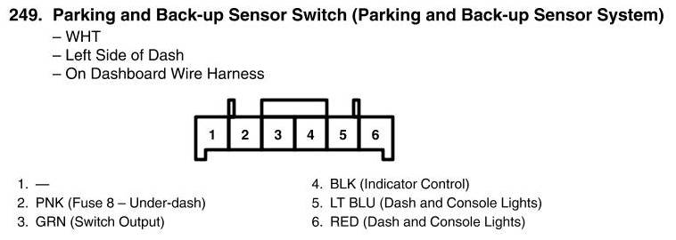 View 249 - Parking And Back-up Sensor Switch Connector View (Parking And Back-up Sensor System)