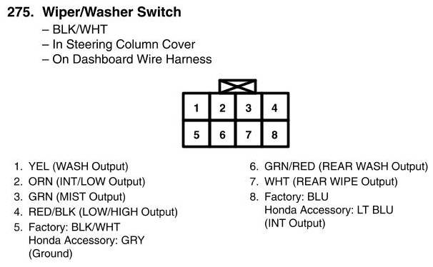 View 275 - Wiper/Washer Switch Connector View