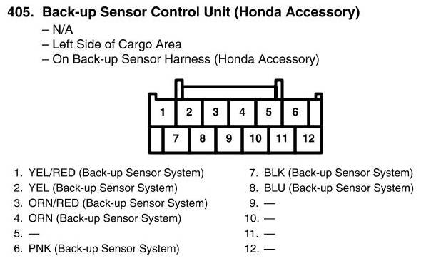 View 405 - Back-up Sensor Control Unit Connector View (Honda Accessory)