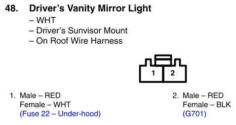 View 48 - Driver's Vanity Mirror Light Connector View