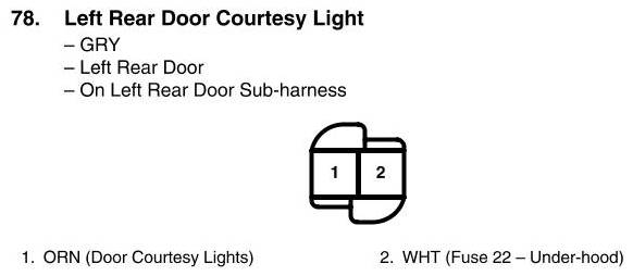 View 78 - Left Rear Door Courtesy Light Connector View