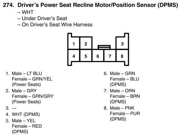 Driver's Power Seat Recline Motor/Position Sensor Connector View (DPMS)