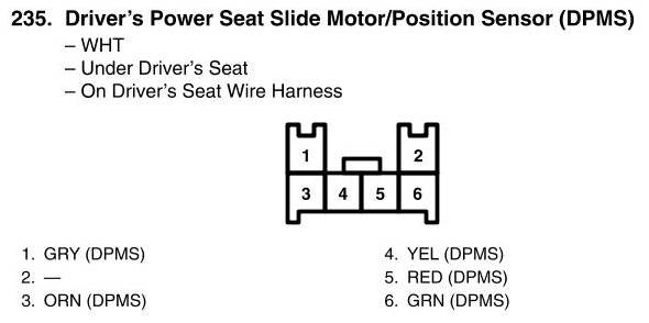 Driver's Power Seat Slide Motor/Position Sensor Connector View (DPMS)