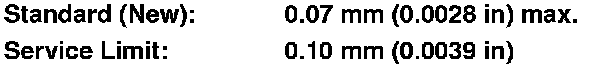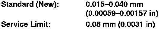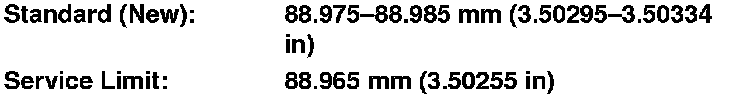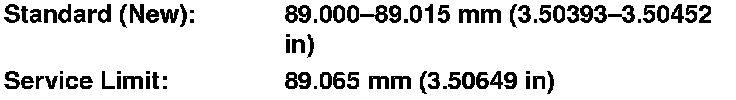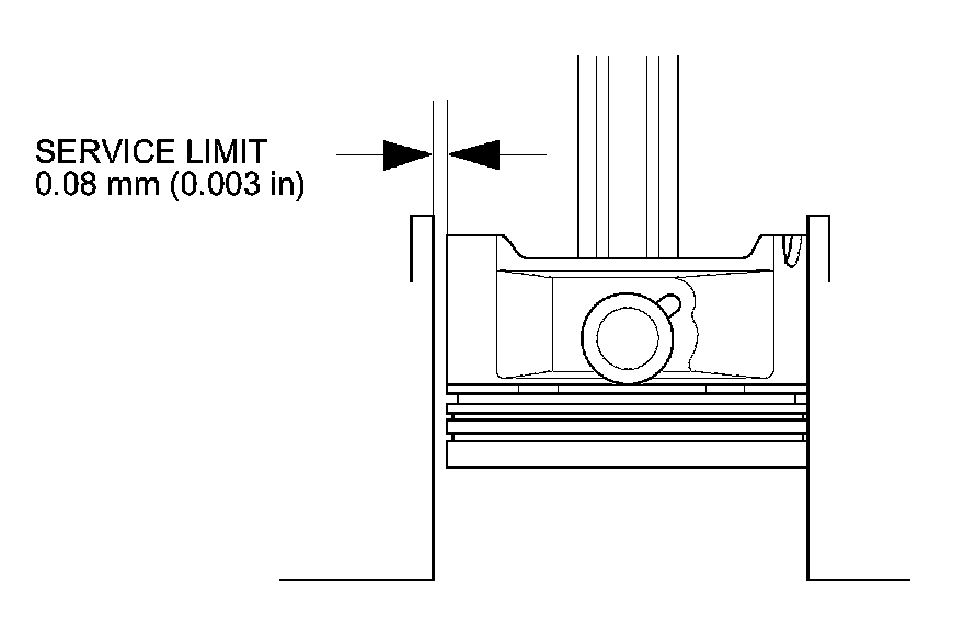 7. Calculate the difference between the cylinder bore diameter and the piston diameter. If the clearance is near or exceeds the service limit, inspect the piston and the cylinder bore for excessive wear.