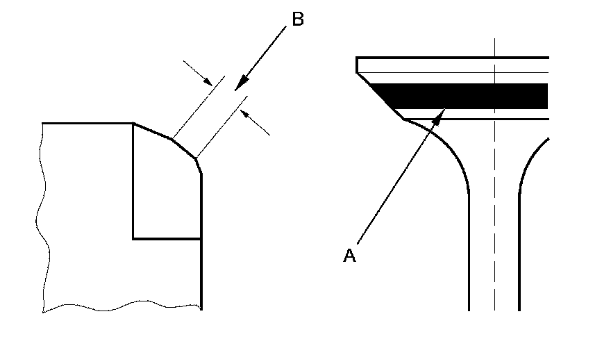 7. The actual valve seating surface (B), as shown by the blue compound, should be centered on the seat.