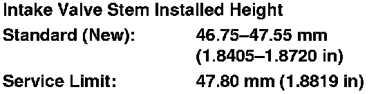 9. If the valve stem installed height is over the service limit, replace the valve and recheck. If it is still over the service limit, replace the cylinder head; the valve seat in the head is too deep.