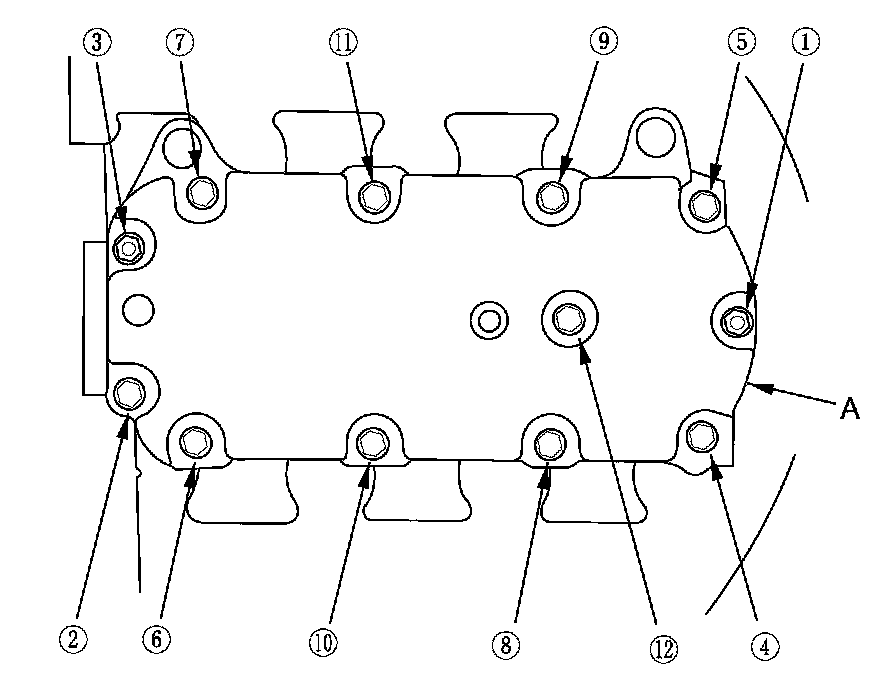 2. Install the upper cover (A). Tighten the bolts and nuts sequentially in three steps. Always use a new intake manifold gasket.