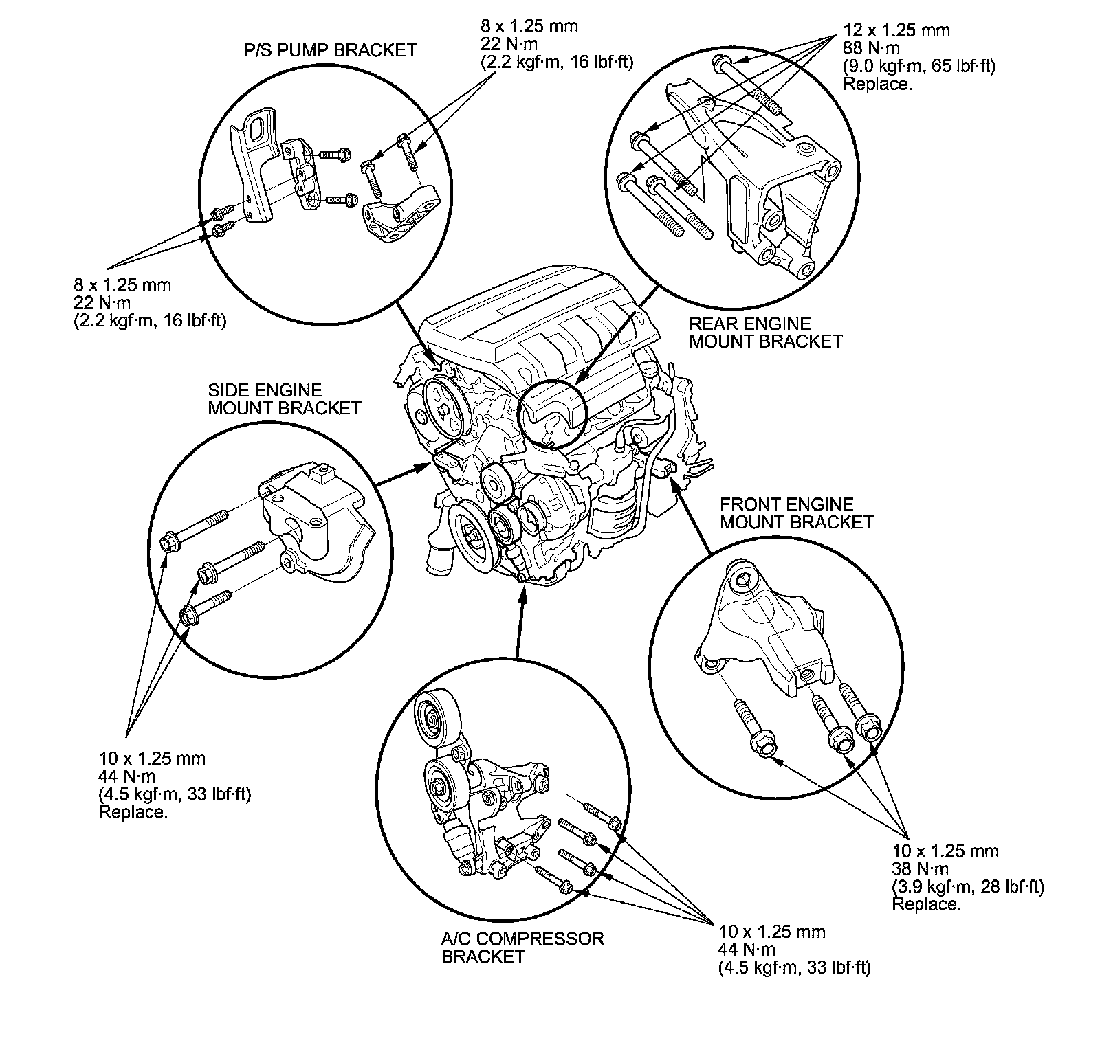 NOTE: Reinstall the mounting bolts/support nuts in the sequence given in the following steps. Failure to follow this sequence may cause excessive noise and vibration, and reduce engine mount life.