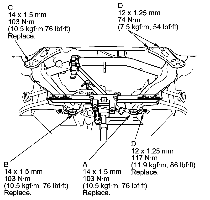 NOTE: Check all of the front subframe mounting bolts, and retighten if necessary.