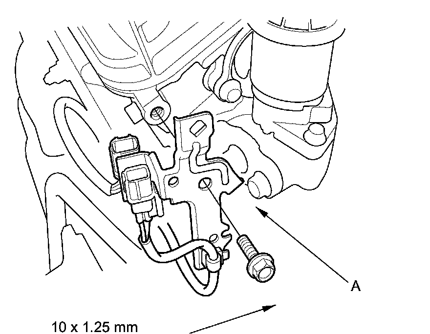 13. Tighten the rear-driver's side subframe mounting bolt (A) to the specified torque.