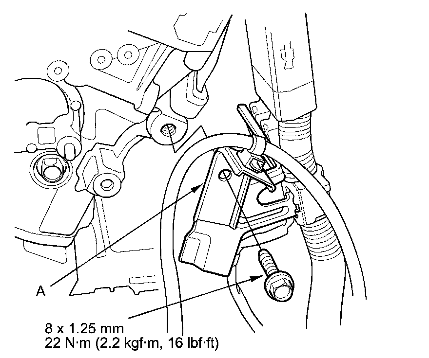 40. Install the harness clamp bracket (A) to the rear cylinder head.