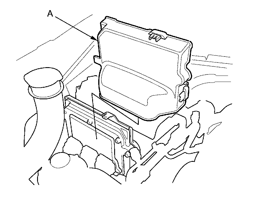19. Remove the powertrain control module (PCM) cover (A).