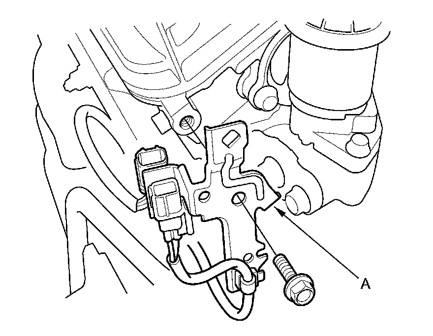 41. Remove the connector bracket (A) from the front cylinder head; use the bracket bolt hole to attach the engine hanger balance bar front arm.