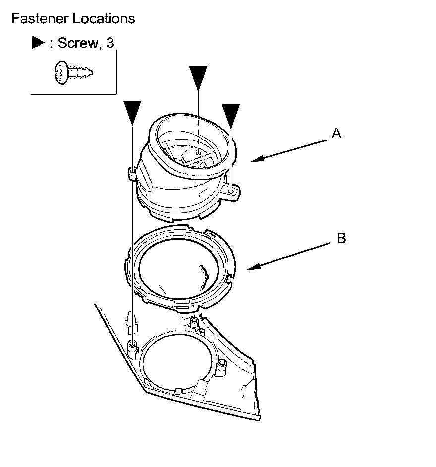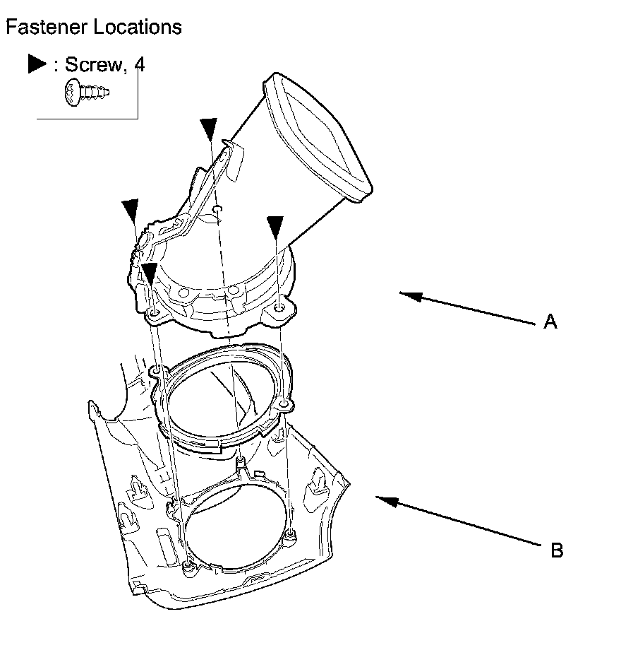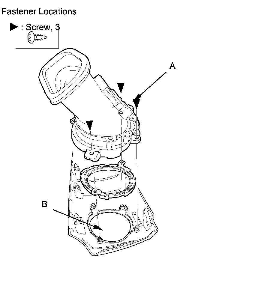 2. Remove the screws, then remove the passenger's side center panel vent (A) and the vent trim (B).