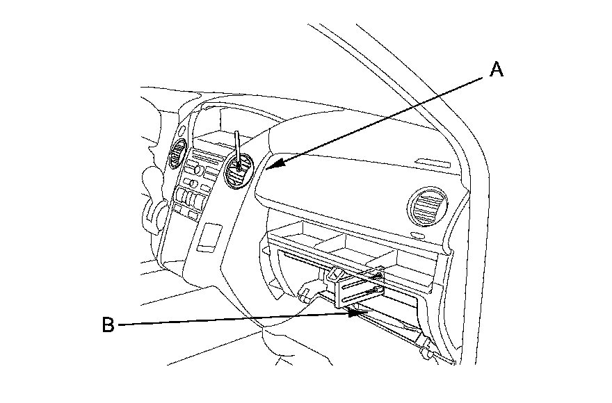3. Open the glove box. Remove the glove box stop on right side, then let the glove box hang down Service and Repair.