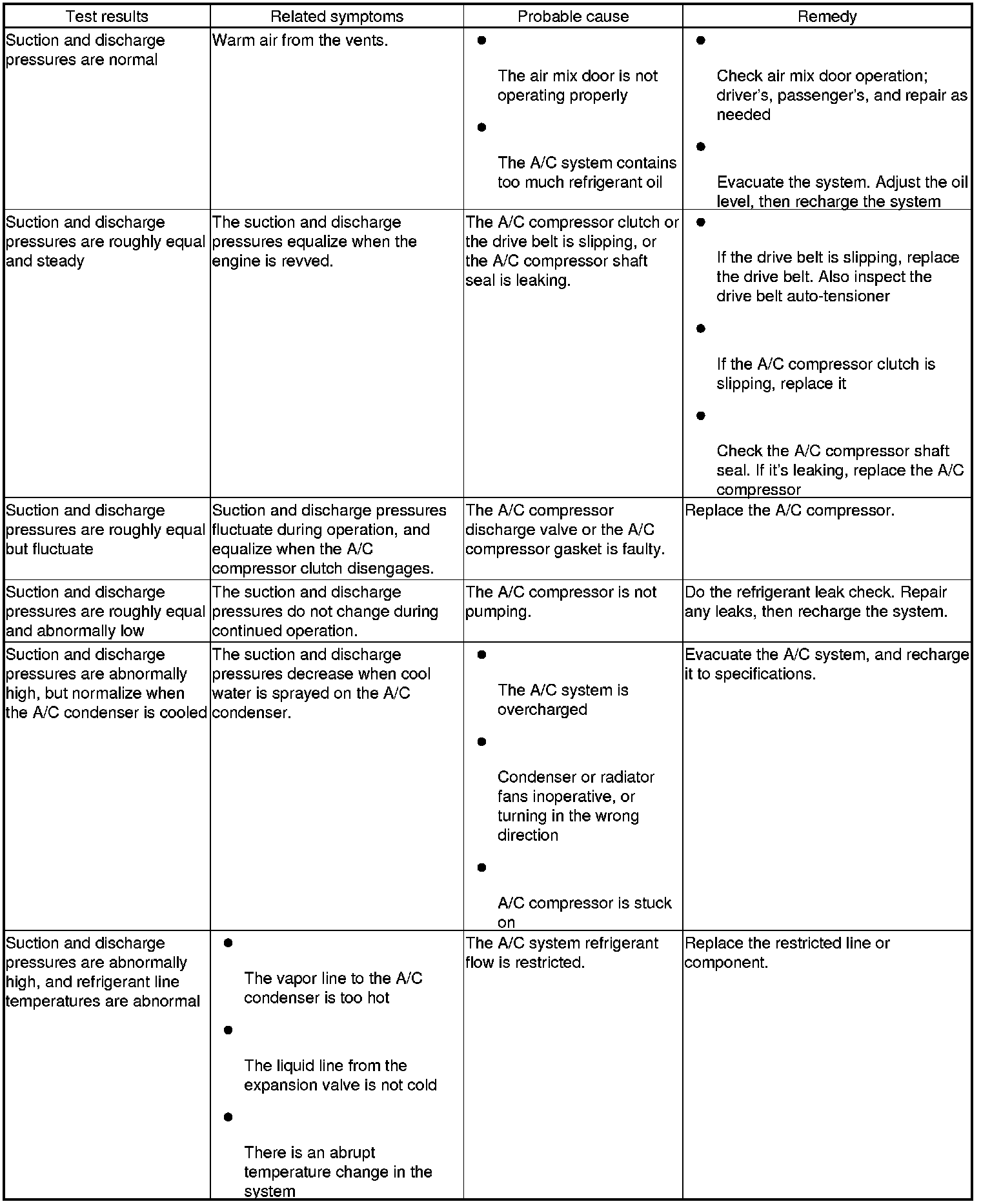 The performance test will help determine if the A/C system is operating within specifications.
