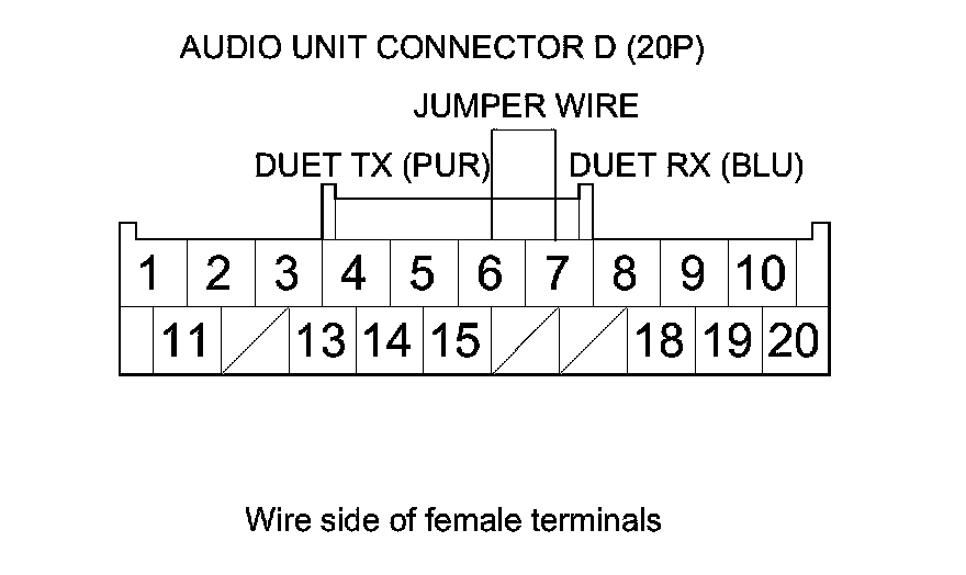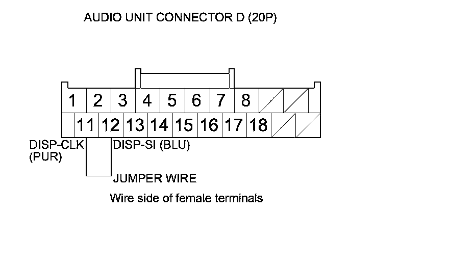 14. Connect audio unit connector D (20P) terminals No. 11 and No. 12 with a jumper wire.