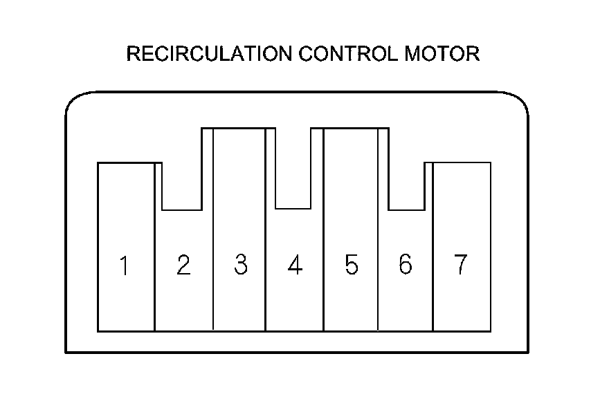 3. '11 model: Connect battery power to terminal No. 1 of the recirculation control motor, and ground terminal No. 2; the recirculation control motor should run smoothly, and stop at Recirculate. If it doesn't, reverse the connections; the recirculation control motor should run smoothly, and stop at Fresh. When the recirculation control motor stops running, disconnect battery power immediately.