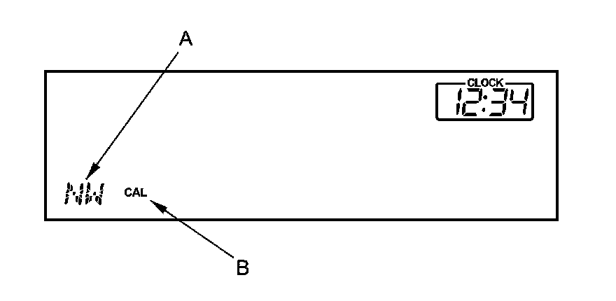 7. While the system calibrates, the azimuth (direction) display (A) blinks and the CAL indicator (B) is shown.