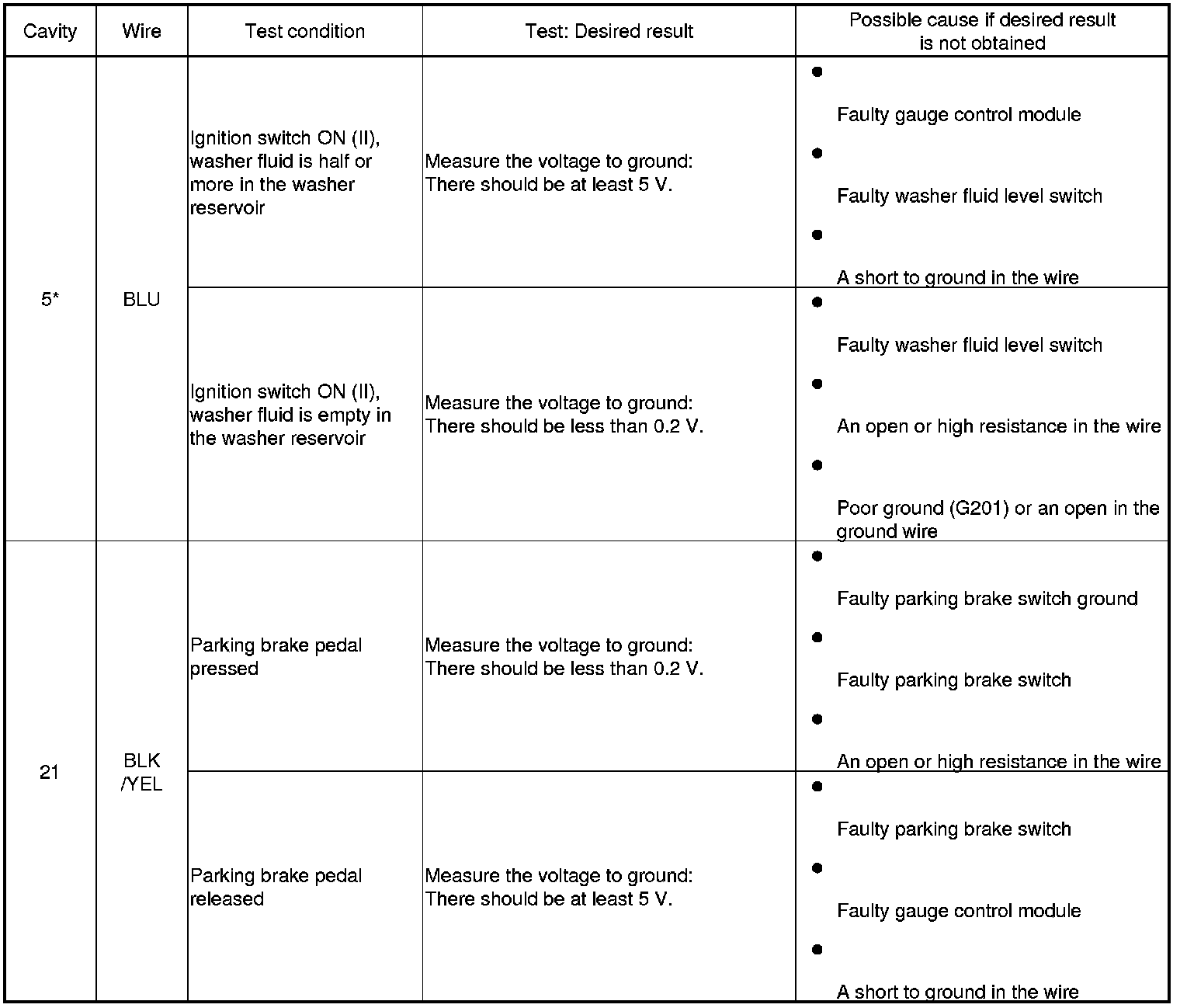 - If the input test proves OK, the gauge control module must be faulty; replace it Service and Repair.
