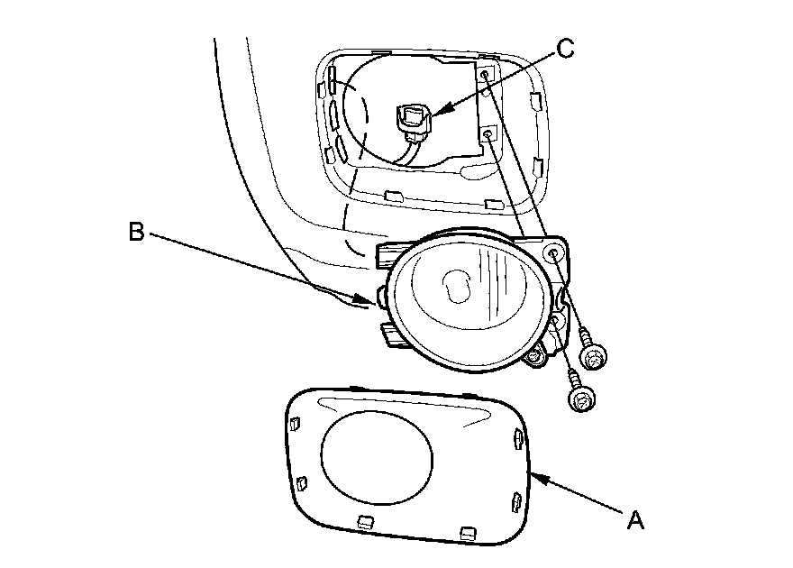 2. Remove the two mounting screws from the fog light, then remove the fog light (B) from the bumper.
