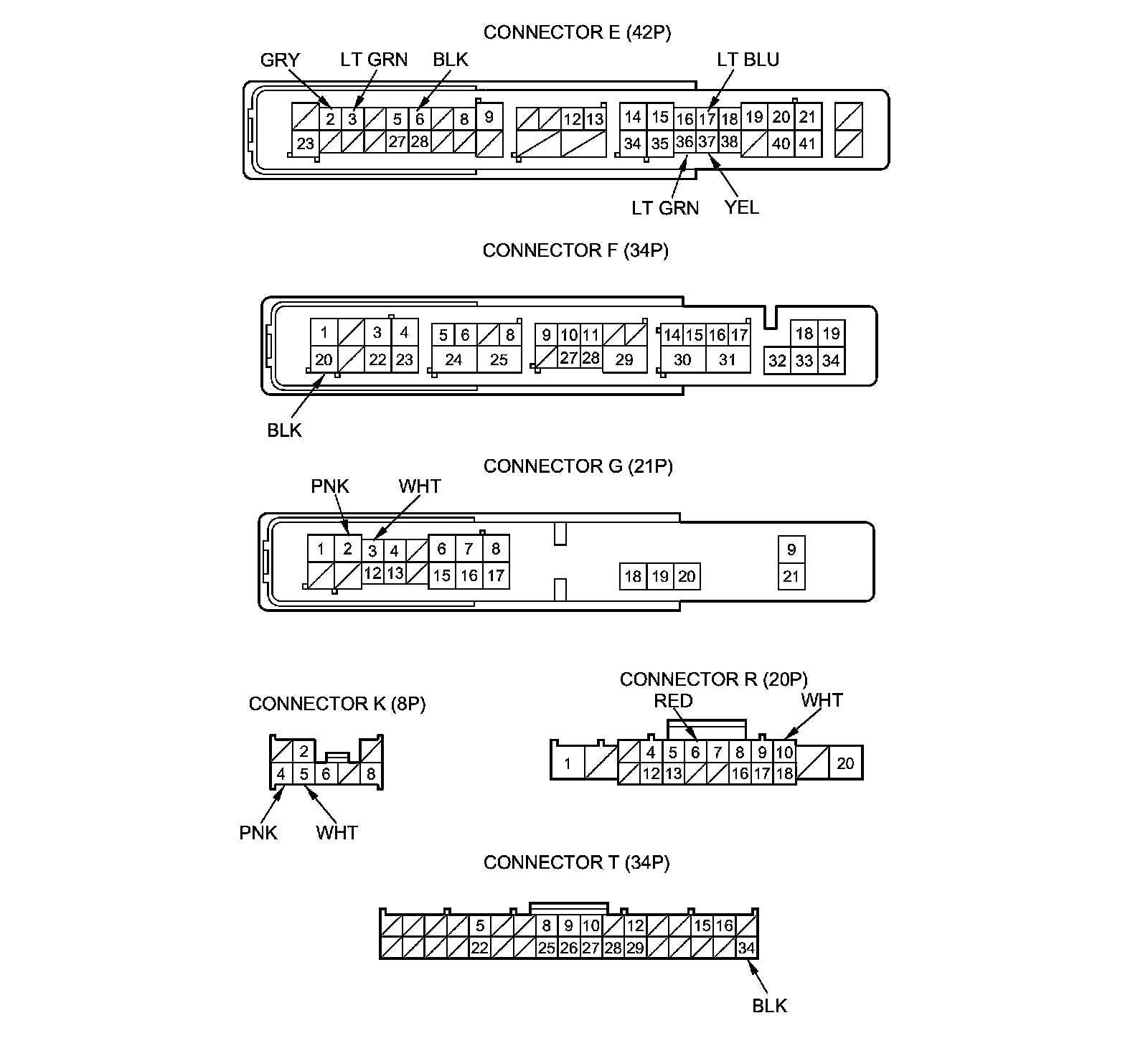 NOTE: All connector views are shown from the wire side of female terminals.
