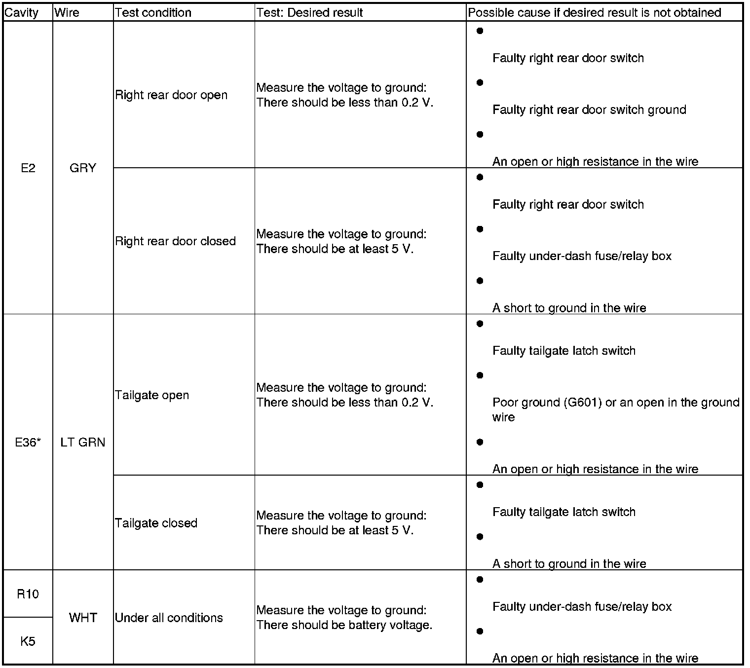 Entry Lights Control System (MICU and Door Multiplex Control Unit) Input Test