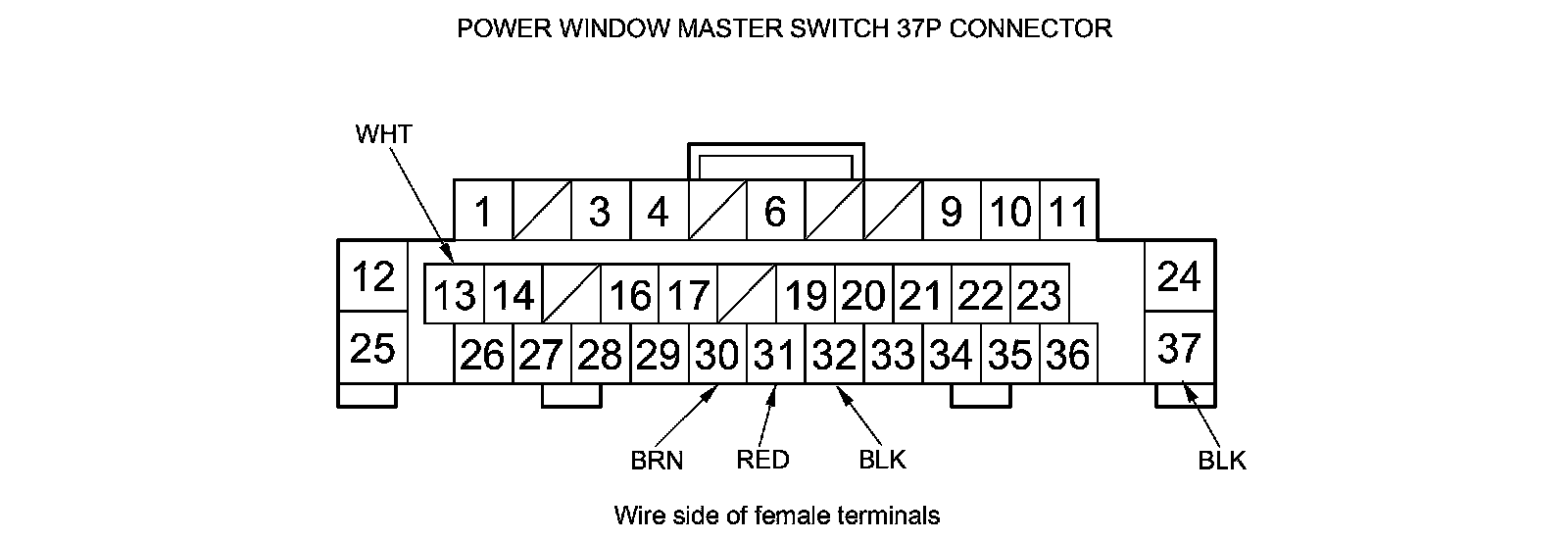 8. Reconnect the 37P connector to the power window master switch, and do the following input tests.