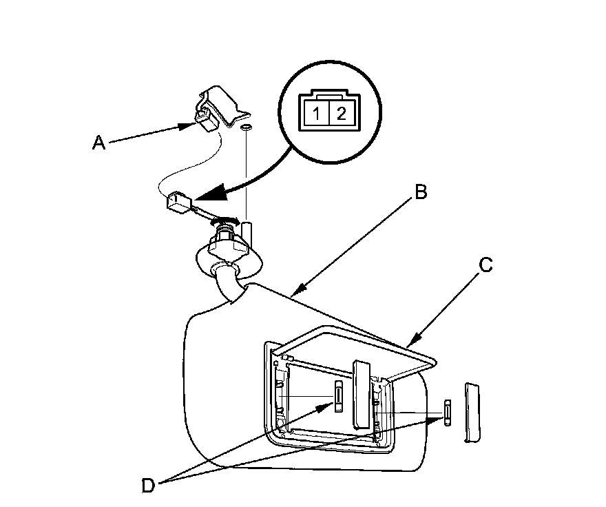 4. If the continuity is not as specified, check the bulbs (D). If the bulbs are OK, replace the vanity mirror light.