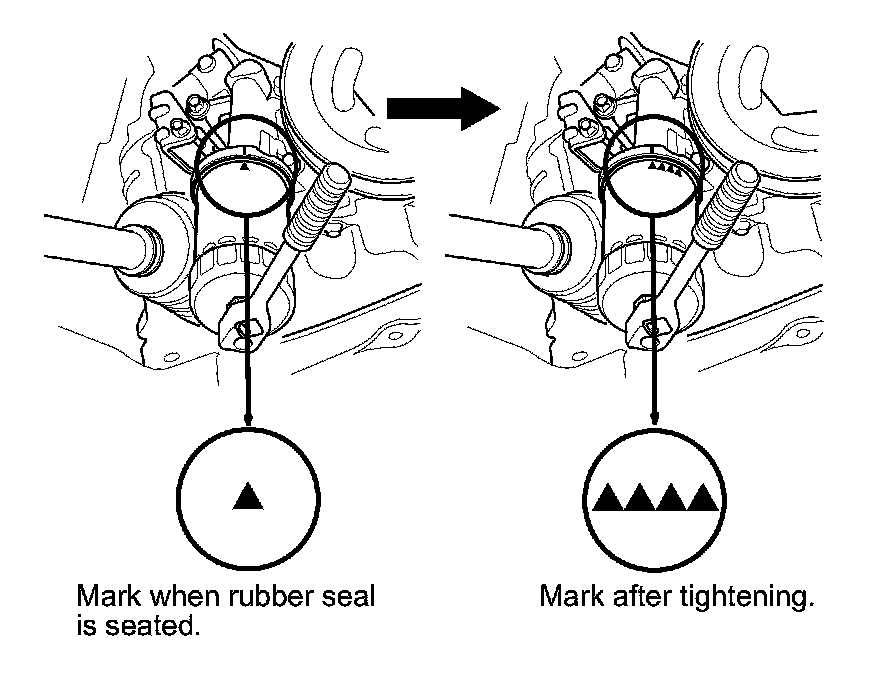 5. After the rubber seal seats, tighten the oil filter clockwise with the oil filter wrench.