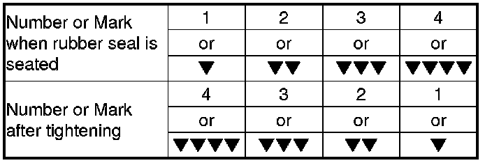 - Tighten the filter by turning it clockwise three numbers or marks from the one you noted. For example, if mark V is at the bottom when the seal is lightly seated, tighten the filter until the mark VVVV comes around to the bottom.