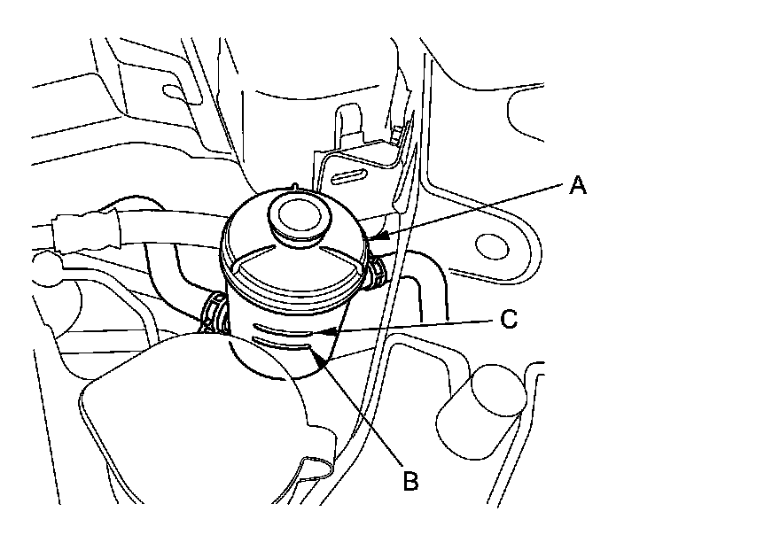 6. Fill the reservoir to the upper level line (C).