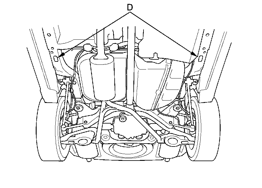 To accommodate the flat-bed tow truck equipment, the vehicle is equipped with a detachable front towing hook(A), front tie down hook slots (B), a rear towing hook (C), and rear tie down hook slots (D).