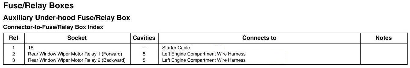 Auxiliary Under-hood Fuse/Relay Box - Connector-to-Fuse/Relay Box Index