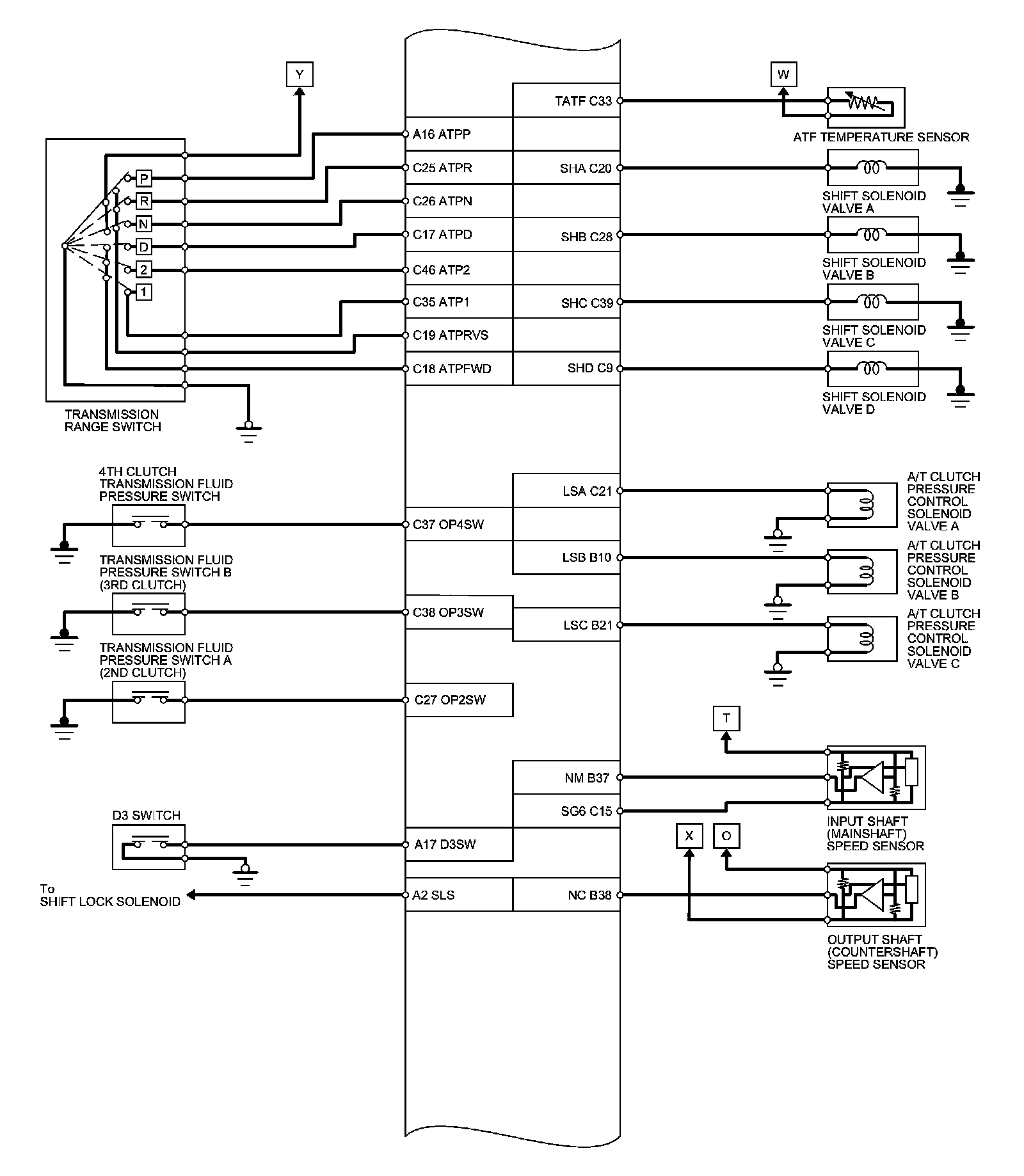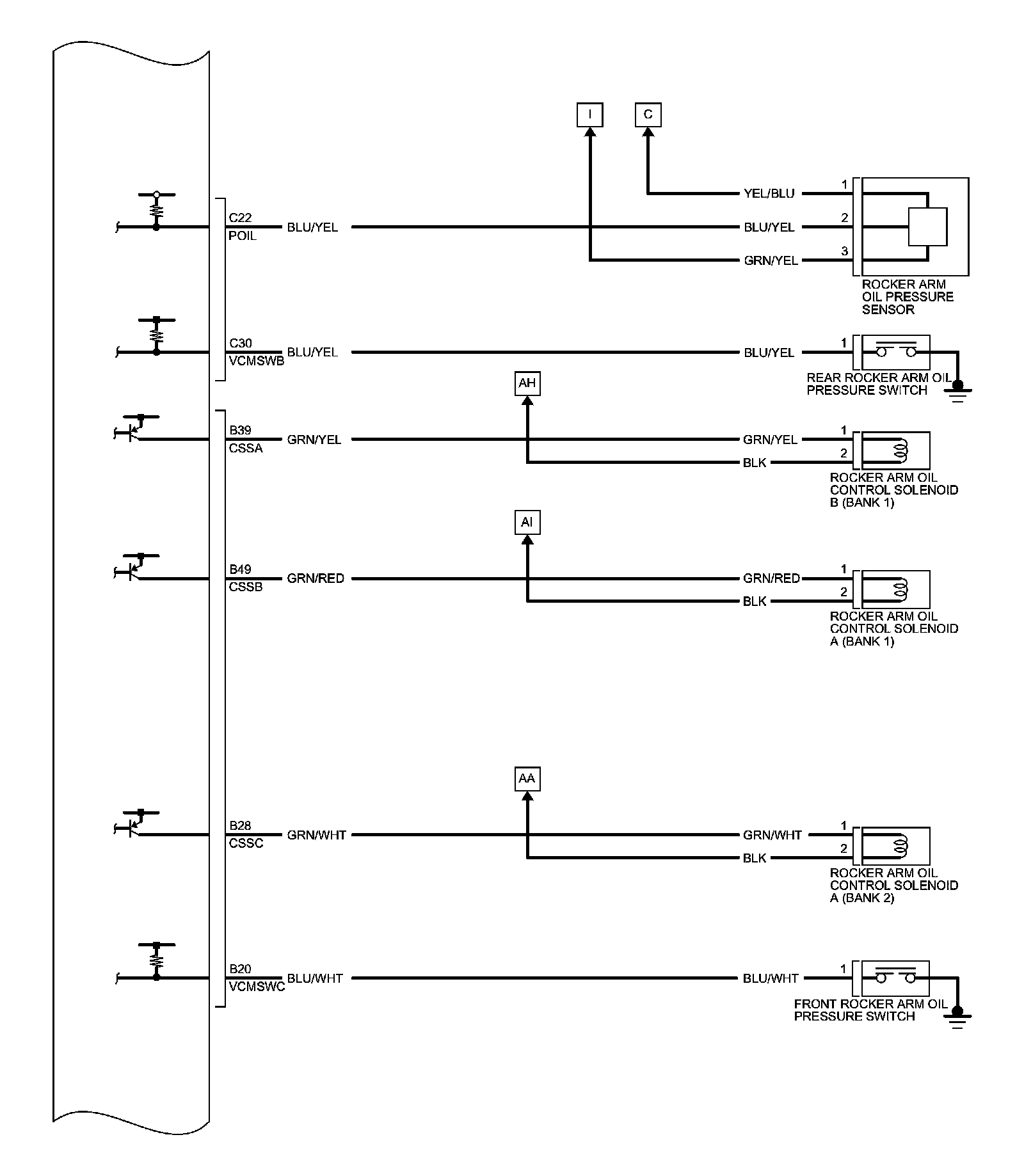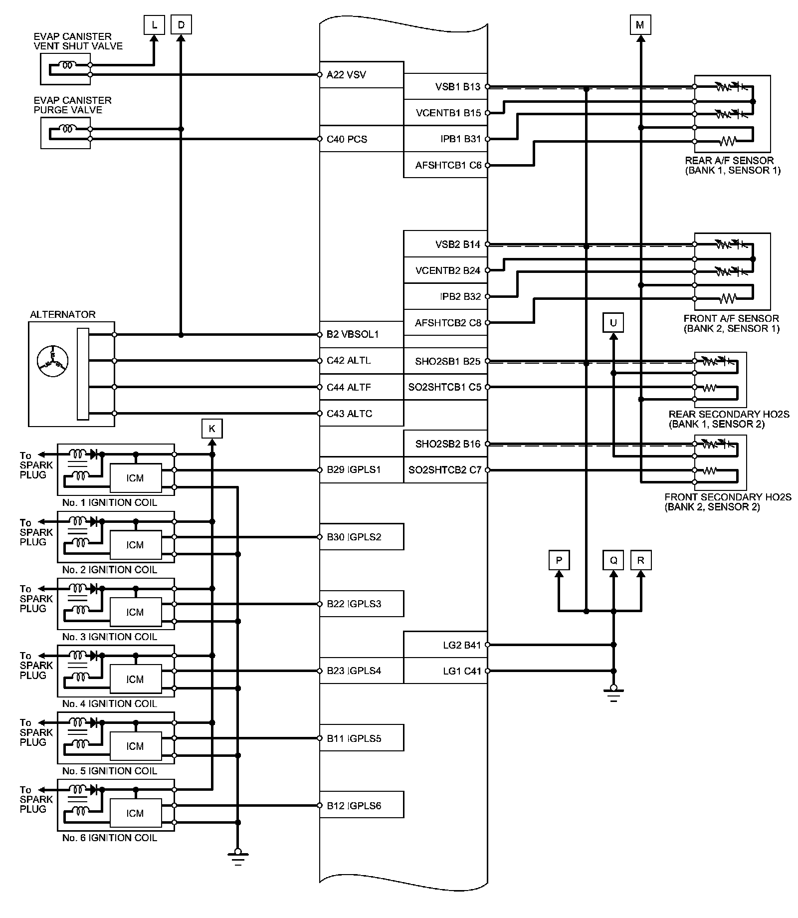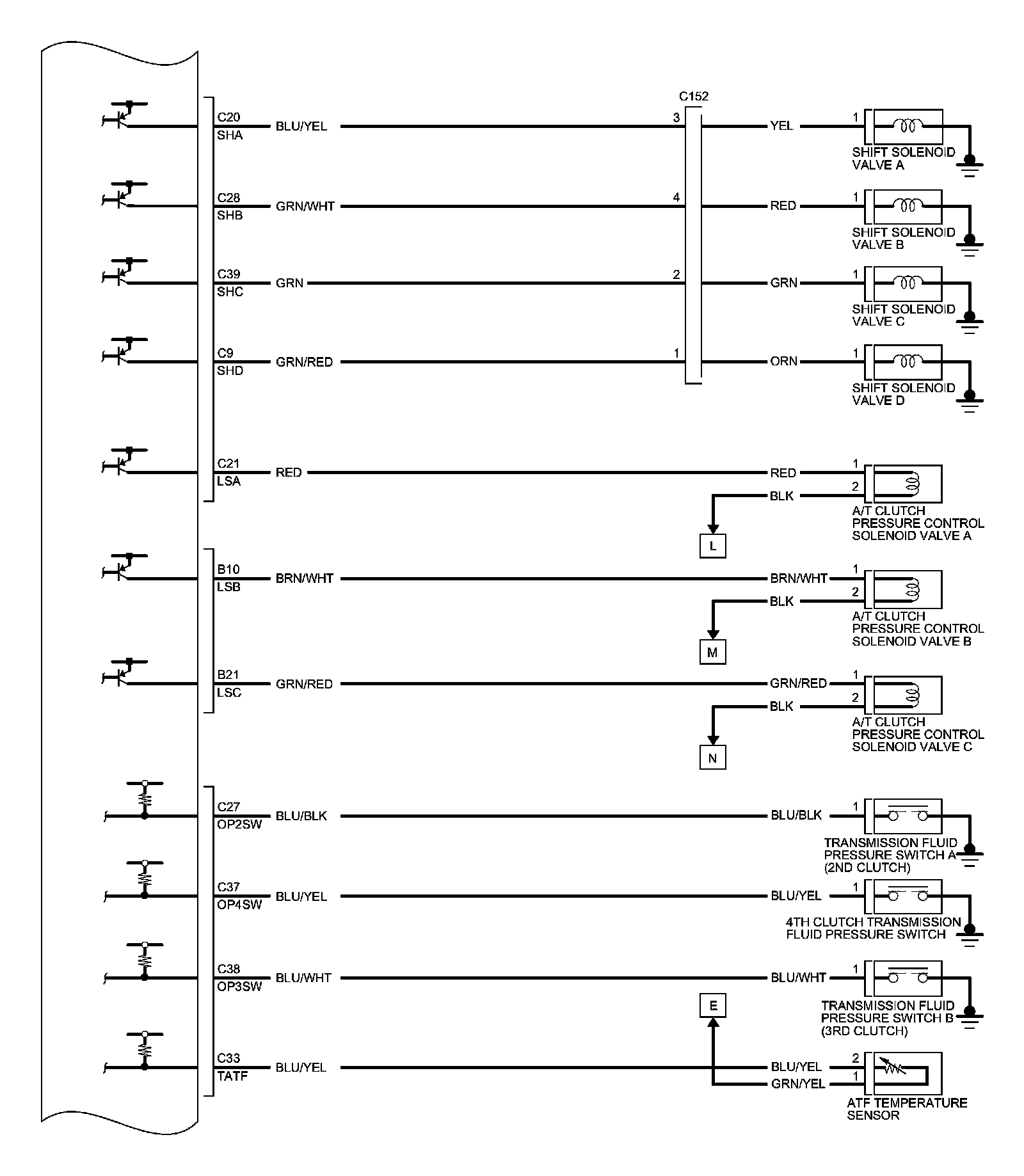 PCM Inputs and Outputs at PCM Connector C (circle) (49P)