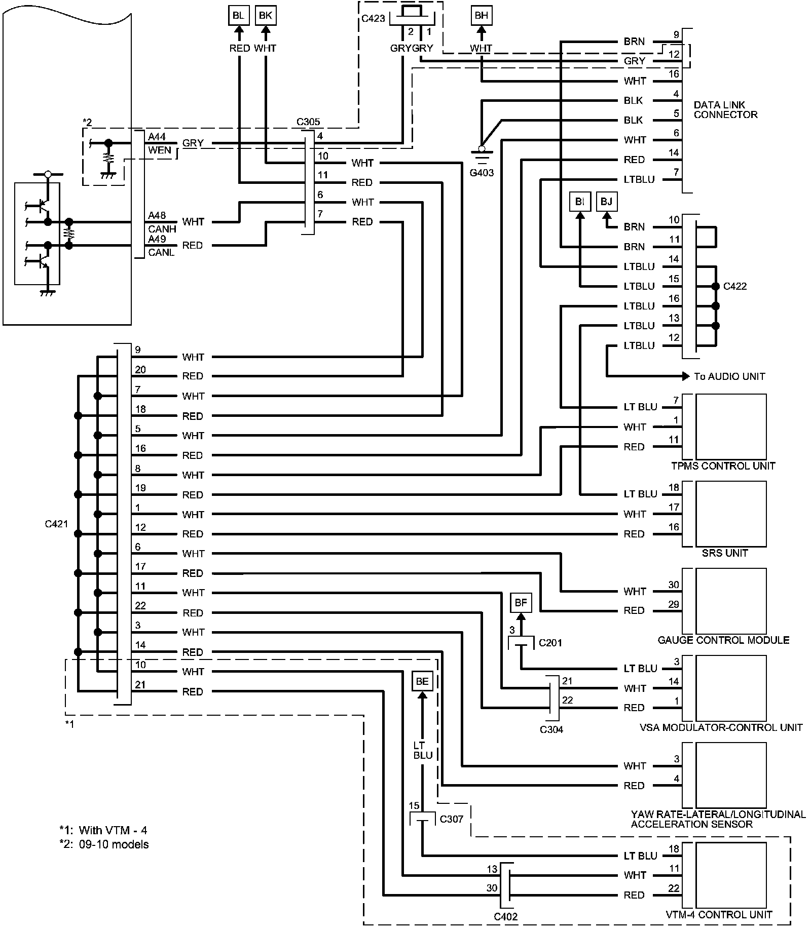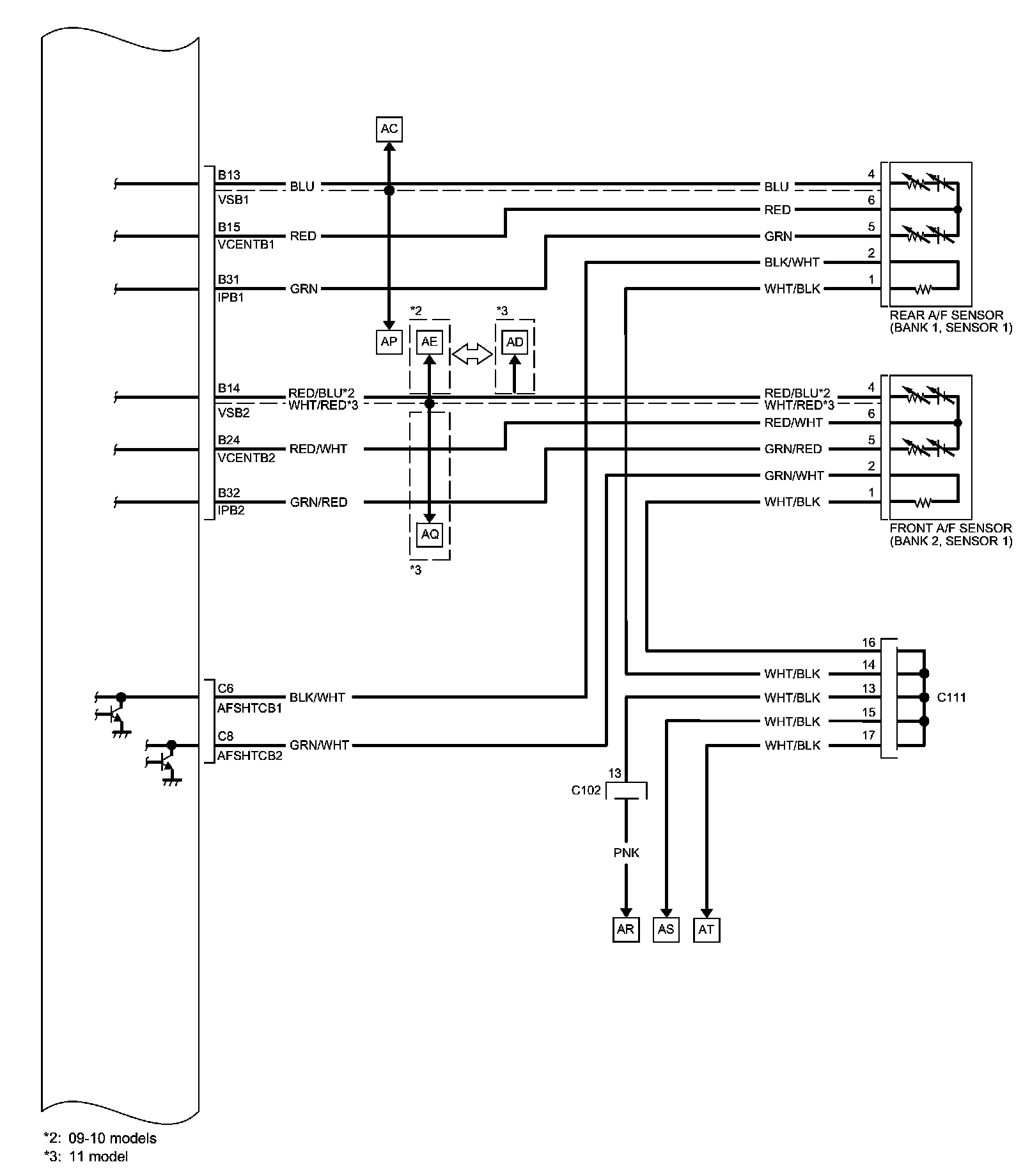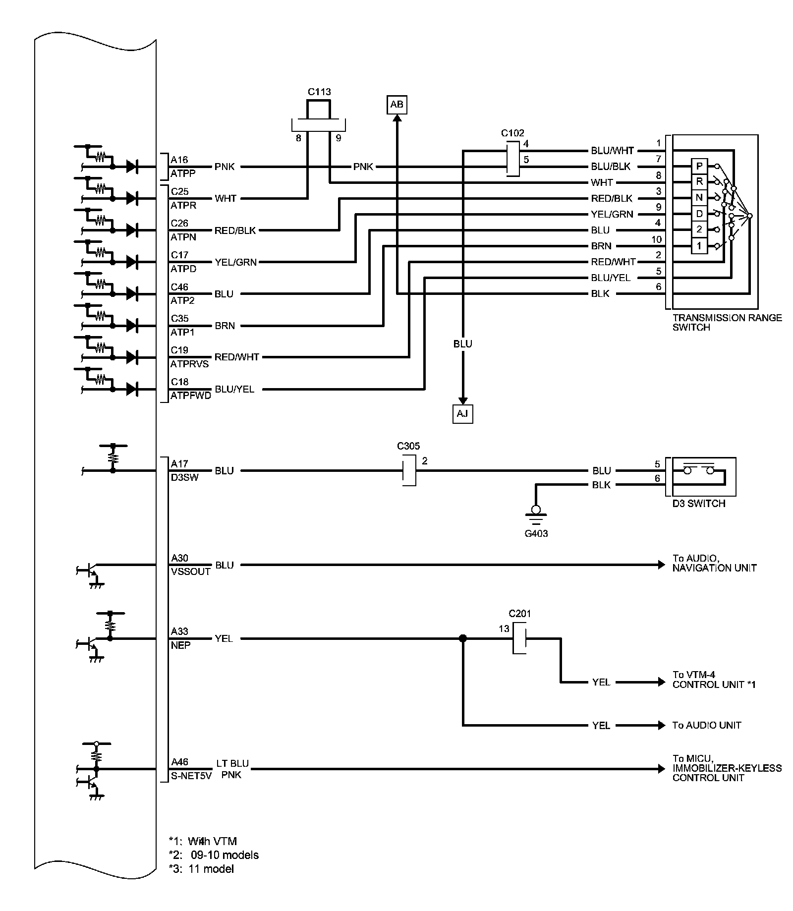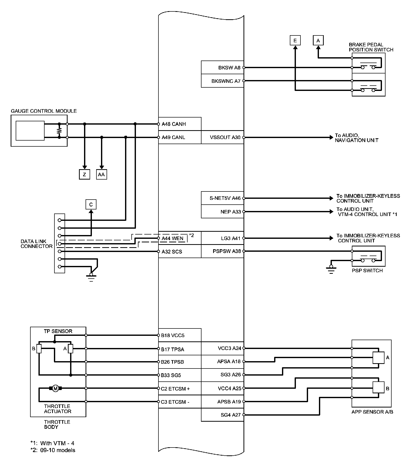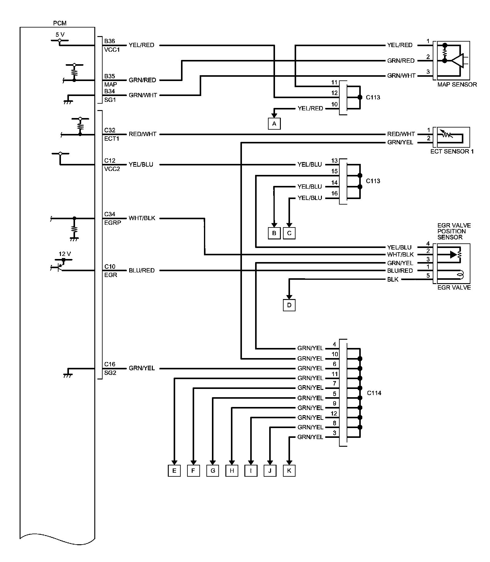PCM Inputs and Outputs at PCM Connector C (circle) (49P)