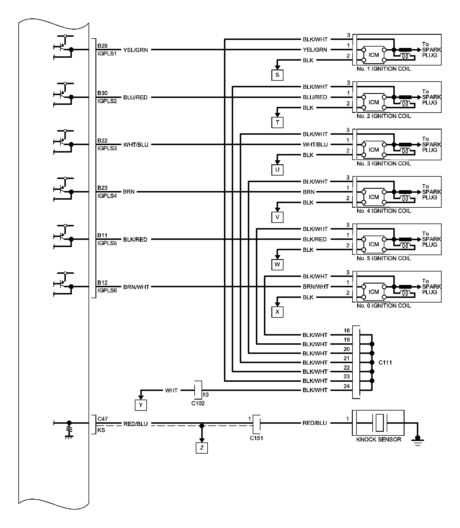 After the ignition switch is turned to LOCK (0), the PCM stays on (about 30 minutes). If the PCM connector is disconnected during this time, the PCM may be damaged. To cancel this mode, disconnect the negative cable from the battery or jump the SCS line with the HDS after the ignition switch is turned to LOCK (0).