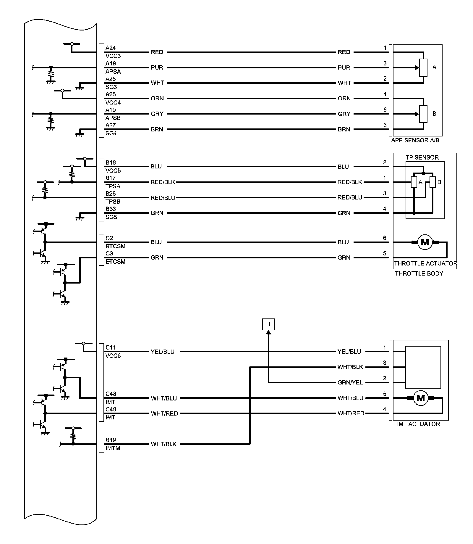 PCM Inputs and Outputs at PCM Connector B (triangle) (49P)