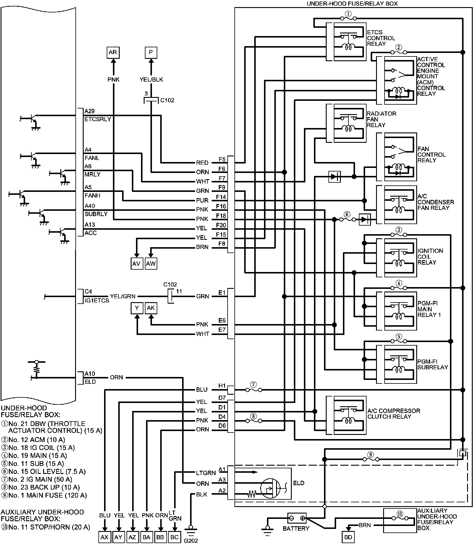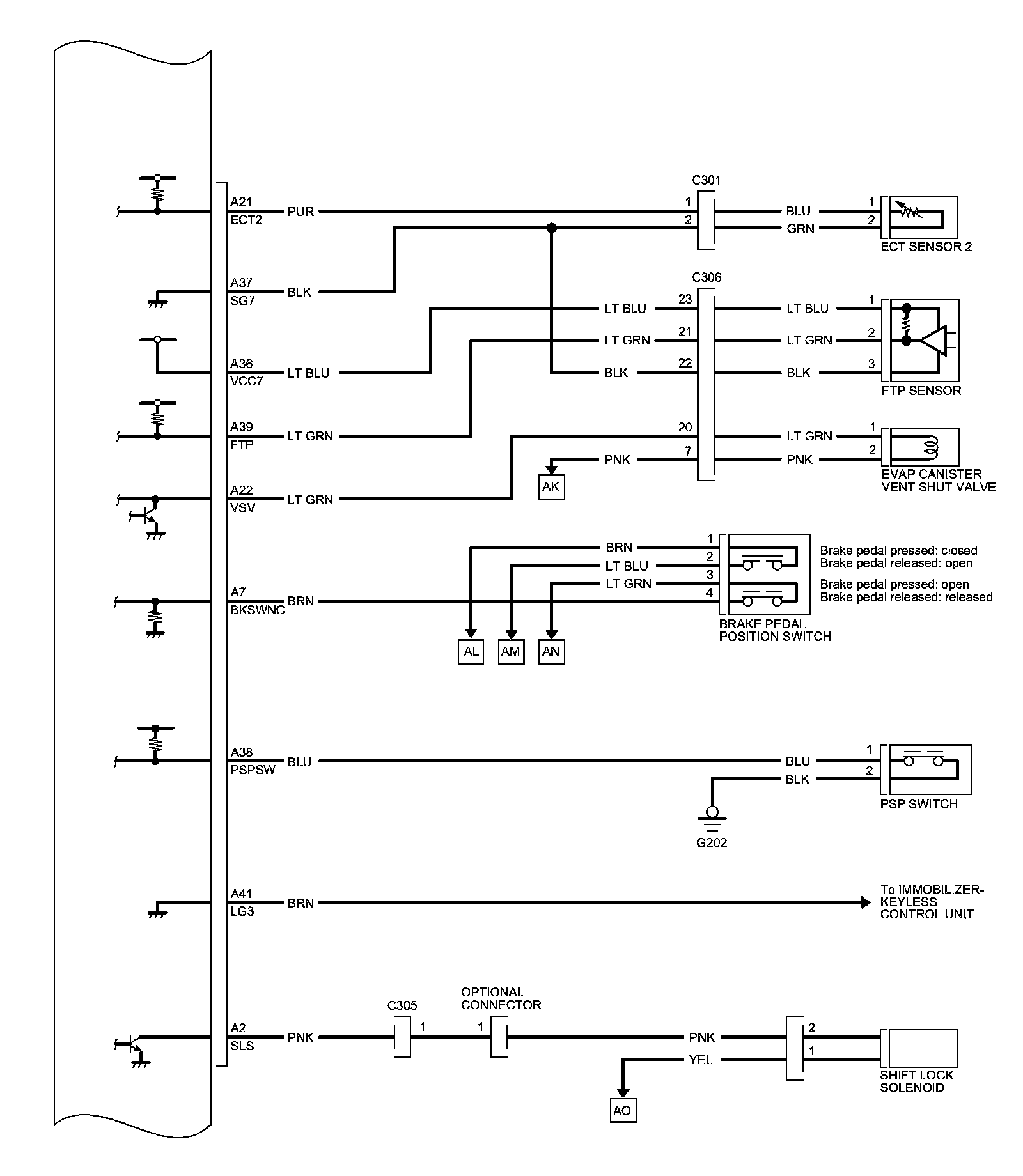 PCM Inputs and Outputs at PCM Connector A (square) (49P)