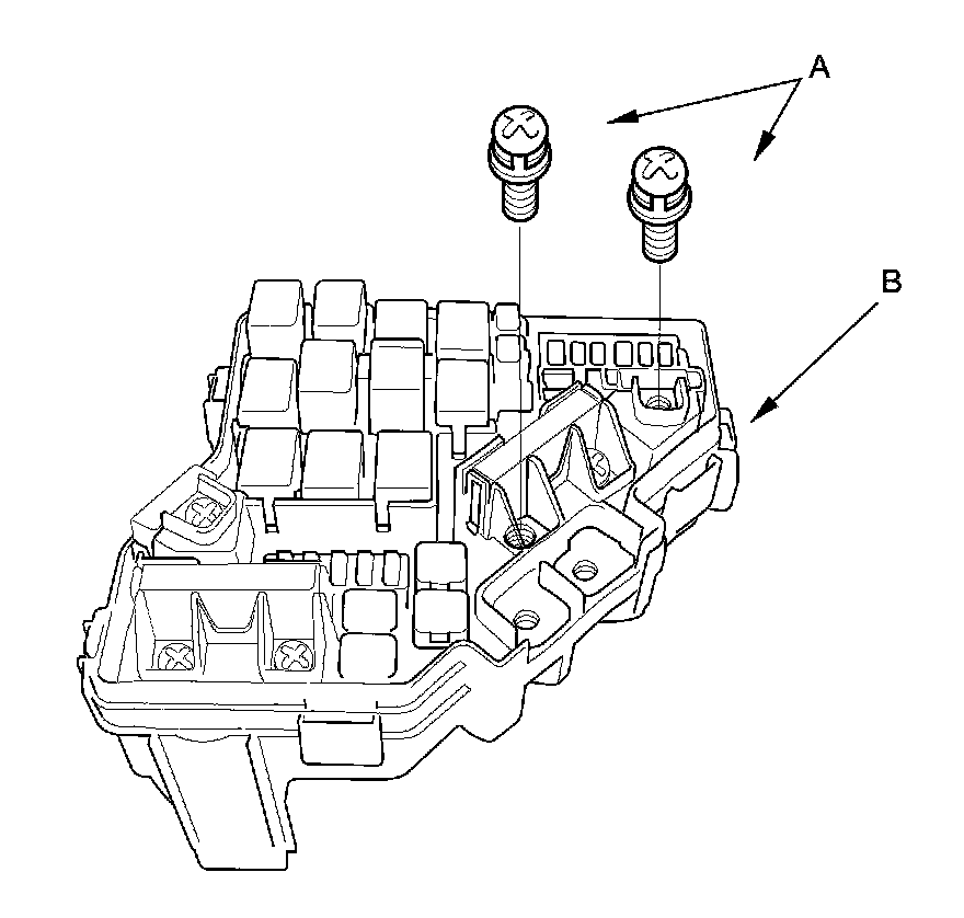 1. Remove the under-hood fuse/relay box Under-Hood Fuse/Relay Box Removal and Installation.