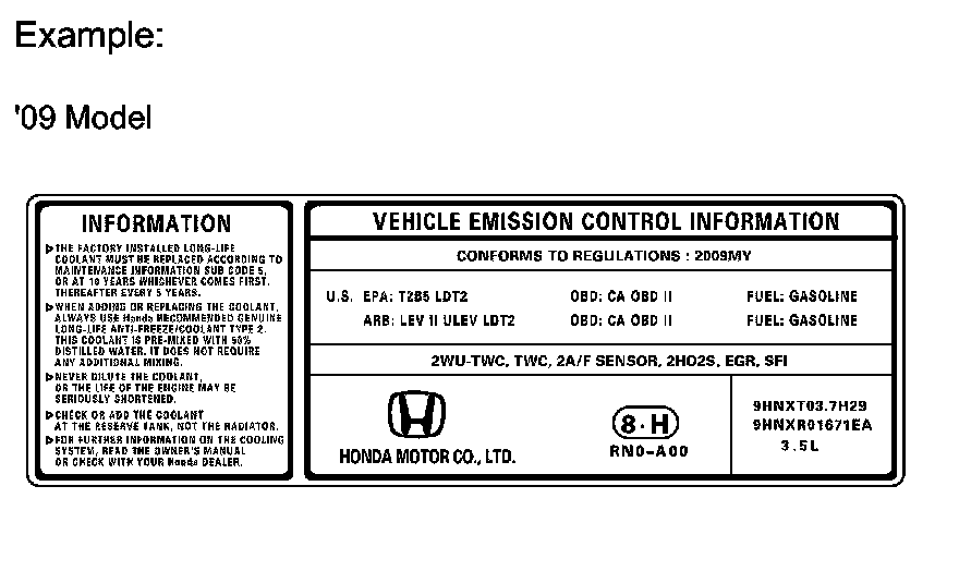 Under-Hood Emission Control LabelEmission Group Identification'09 ModelCONFORMS TO REGULATIONS: 2009MY