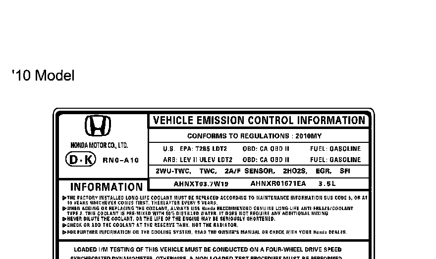 '10 ModelCONFORMS TO REGULATIONS: 2010MY