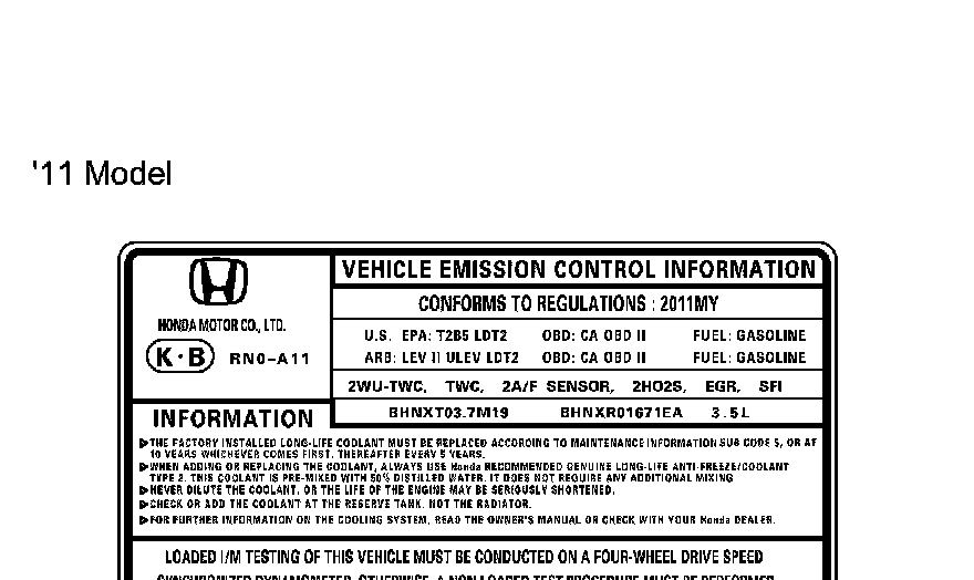 '11 ModelCONFORMS TO REGULATIONS: 2011MY