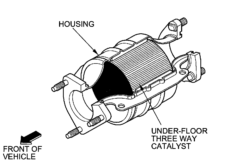 The WU-TWC/Under-floor TWC converts hydrocarbons (HC), carbon monoxide (CO), and oxides of nitrogen (NOx) in the exhaust gas to carbon dioxide (CO2), nitrogen (N2), and water vapor.