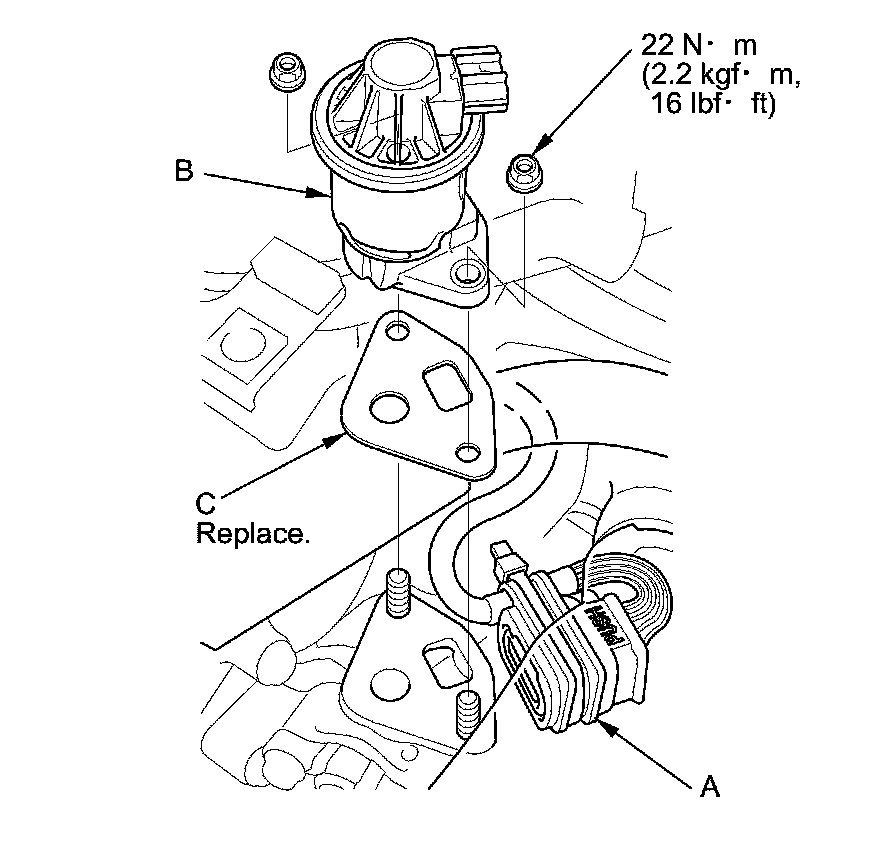 Install the parts in the reverse order of removal with a new gasket (C).
