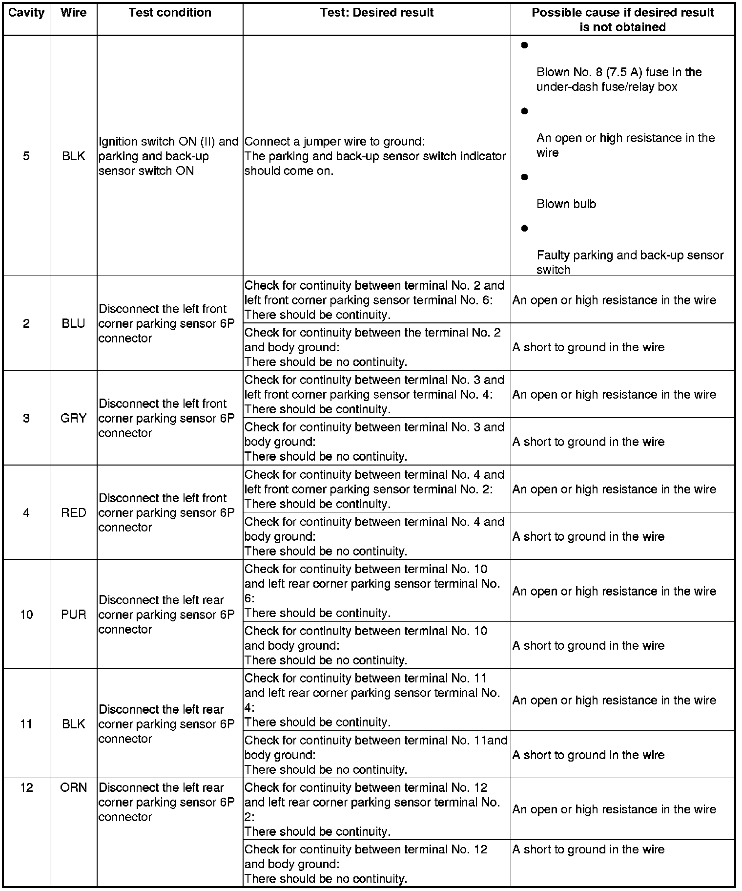 Parking and Back-up Sensor Control Unit Input Test/Replacement
