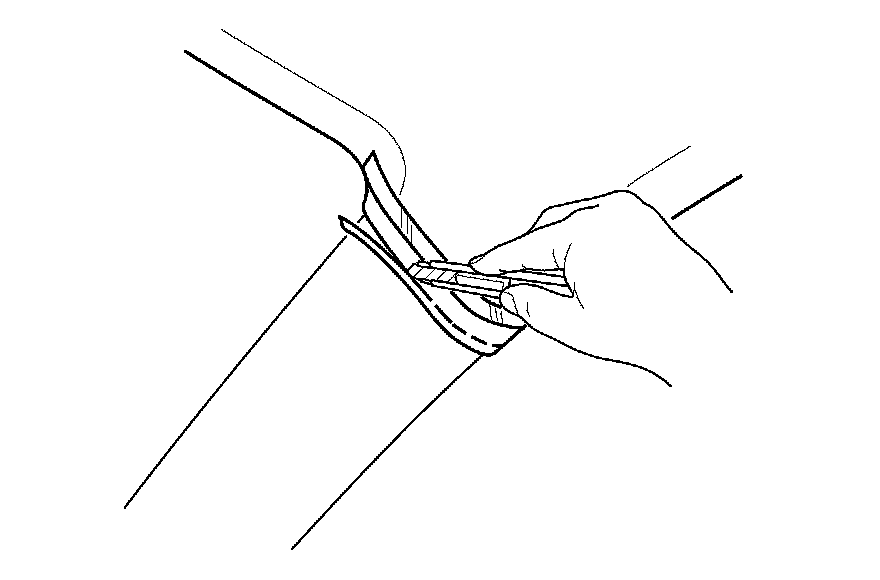 4. Carefully trim the headliner with a utility knife, reducing the overlap to less than 8 mm (0.3 in).
