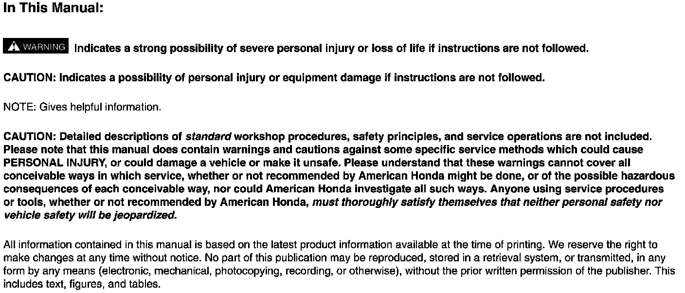 Your safety, and the safety of others, is very important. To help you make informed decisions, we have provided safety messages, and other safety information throughout this information. Of course, it is not practical or possible to warn you about all the hazards associated with servicing this vehicle. You must use your own good judgment.