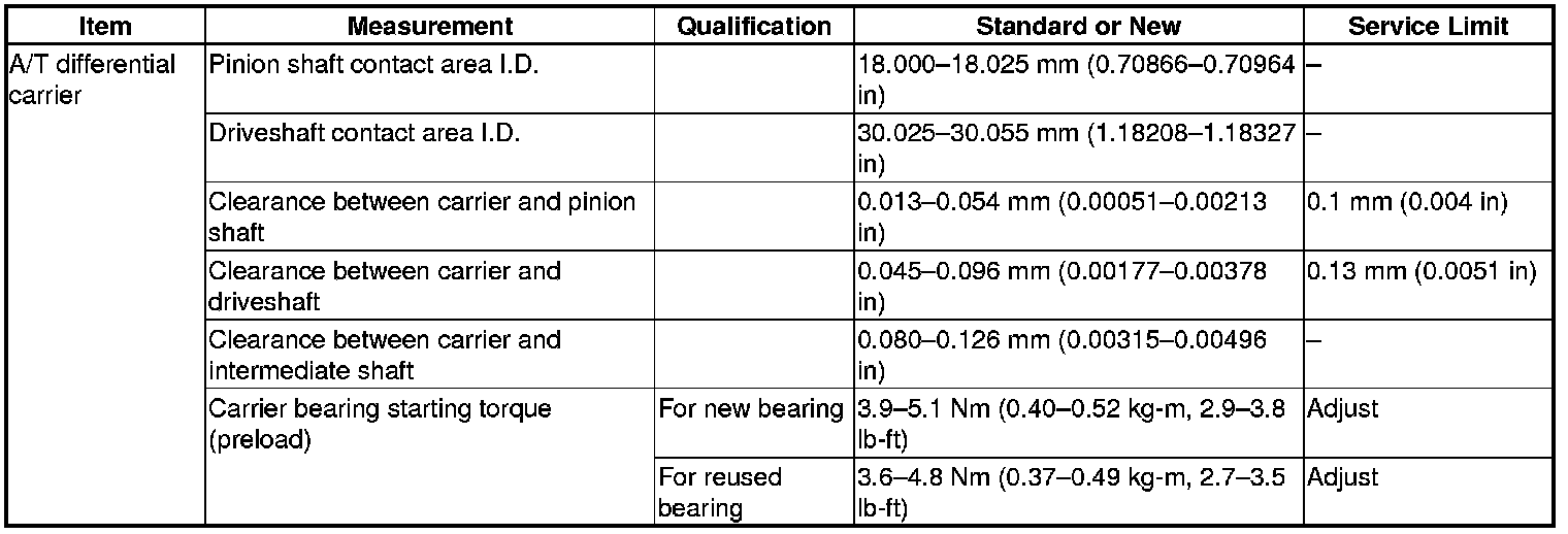 A/T Differential Carrier Specification(s)