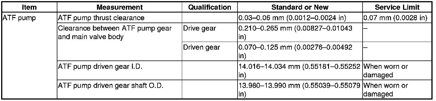 ATF Pump Specifications (USA/Canada)